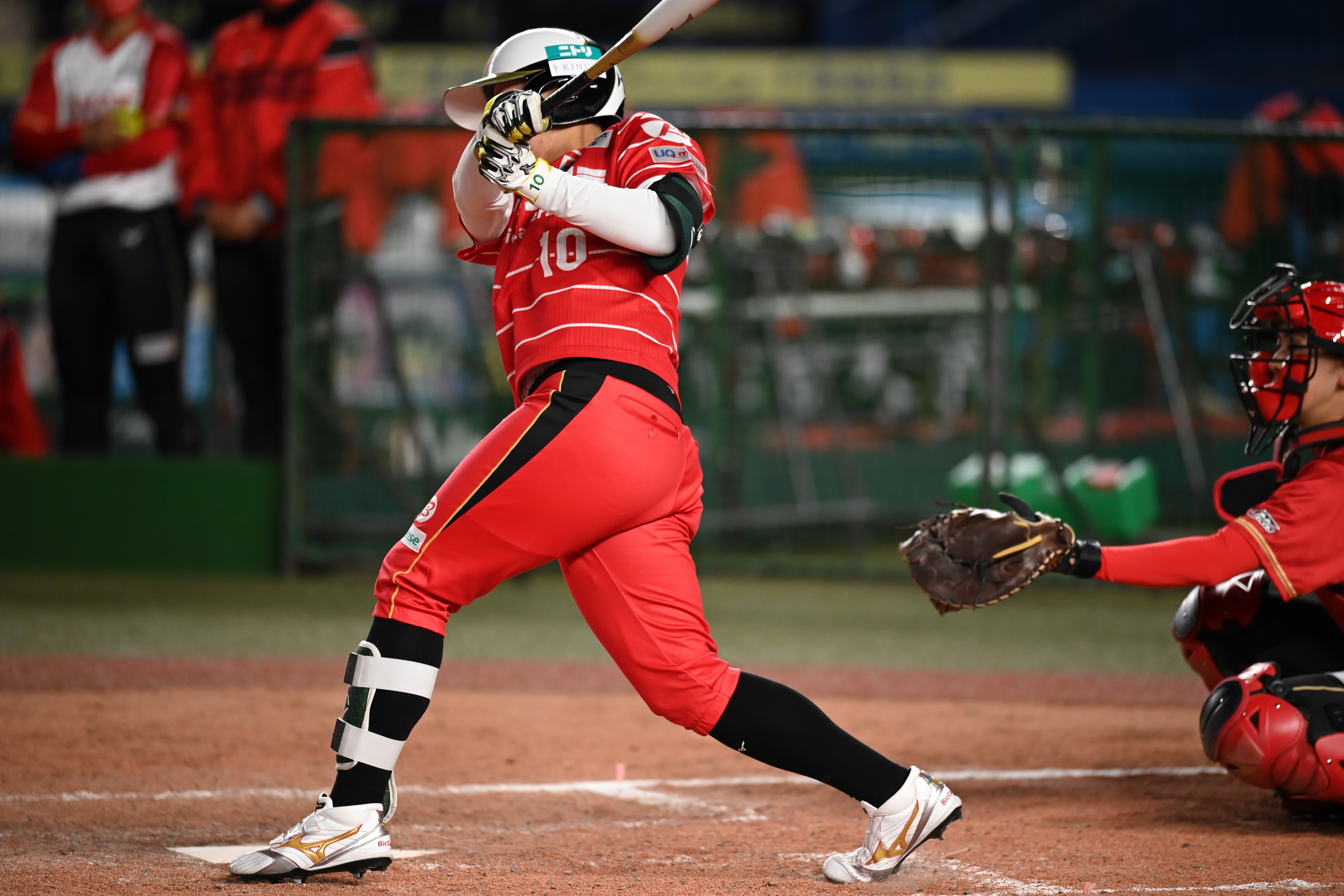 撮影会では、選手の動きに注目しながら、望遠レンズでソフトボールを撮影します。