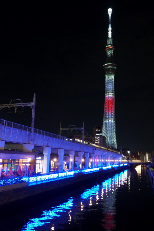 ライトアップされた東京スカイツリーを
