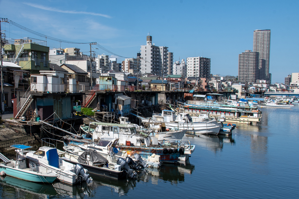 初めの場所は、船を陸や橋から撮影。現在漁をしていない漁師町の